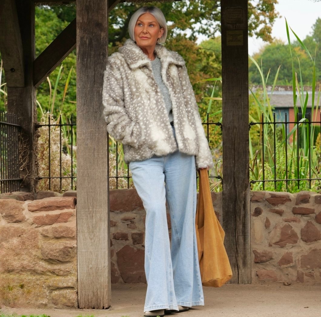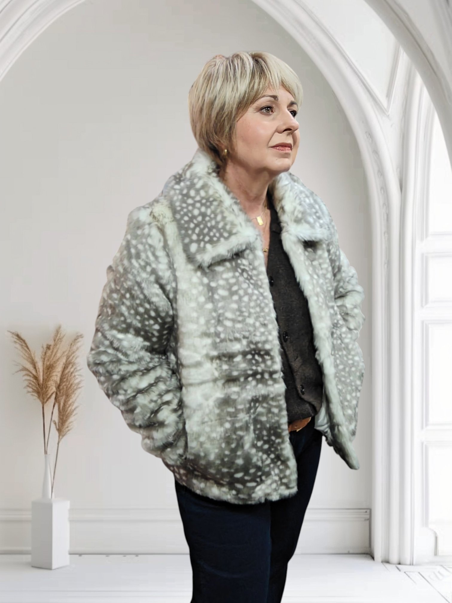 Stand out from the crowd in this fabulous faux fur jacket with unusual design.