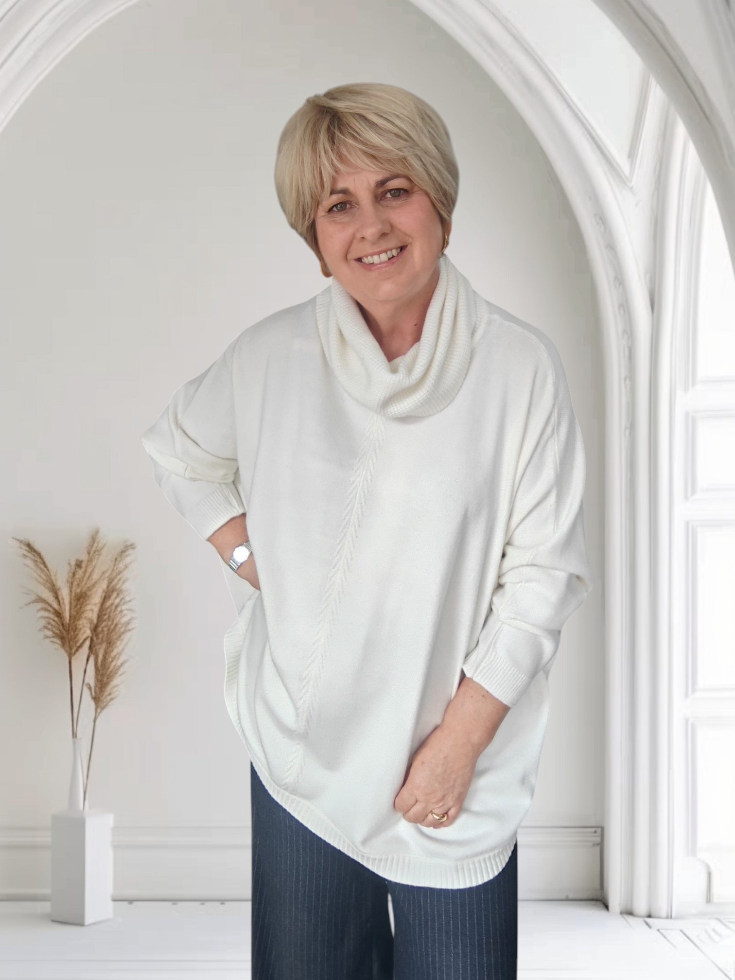 Oversized cowl neck, raglan sleeve sweater in winter white