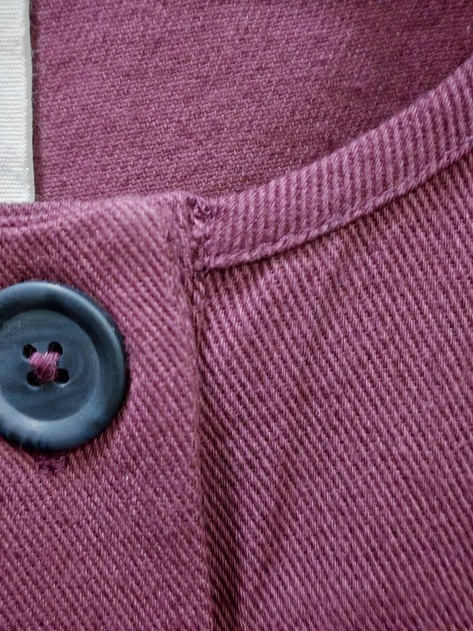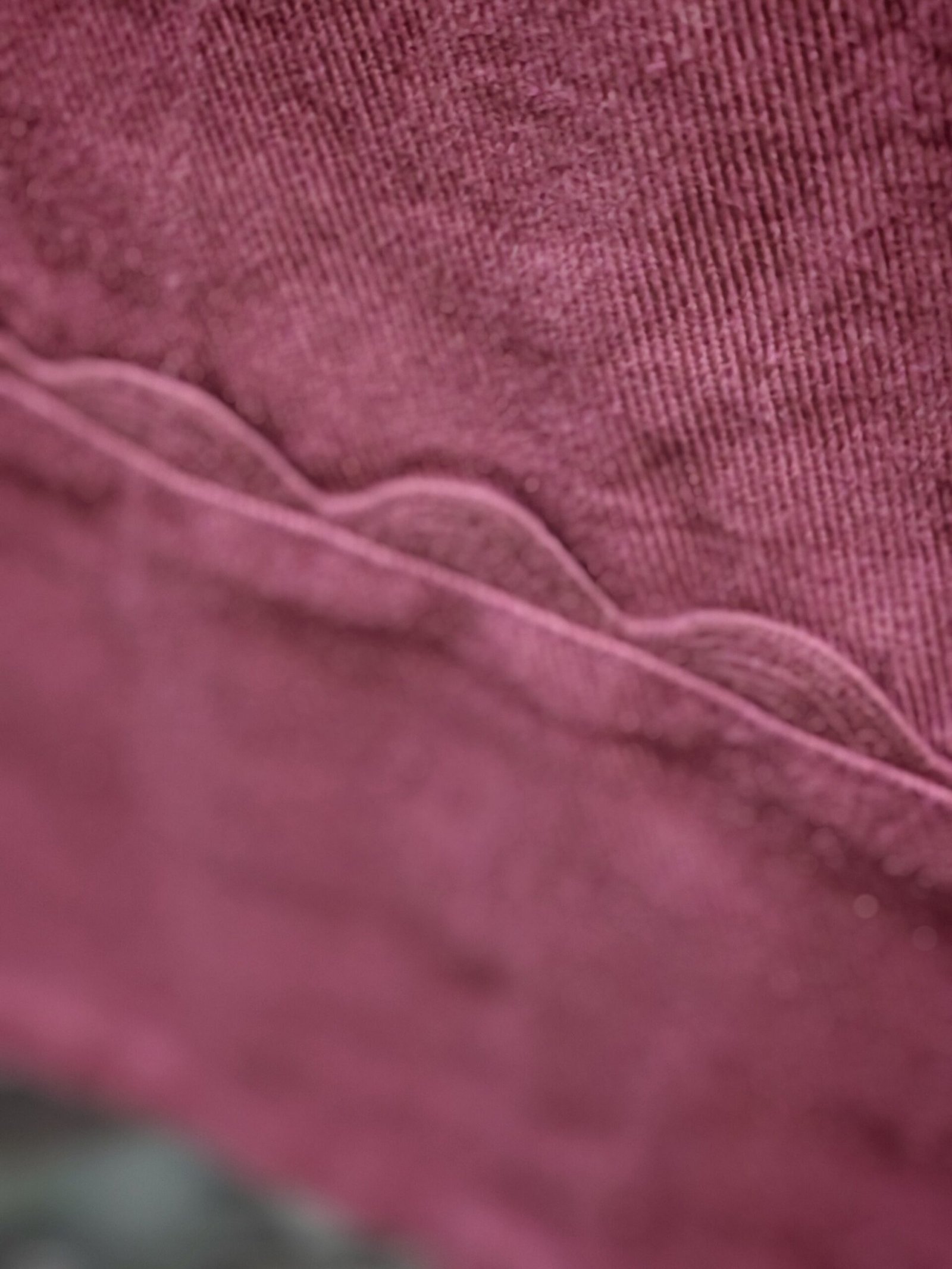This heavy cotton jacket with interesting scallop details will be a good to in any season. A perfect alternative to a denim jacket! Front patch pockets. Button front.